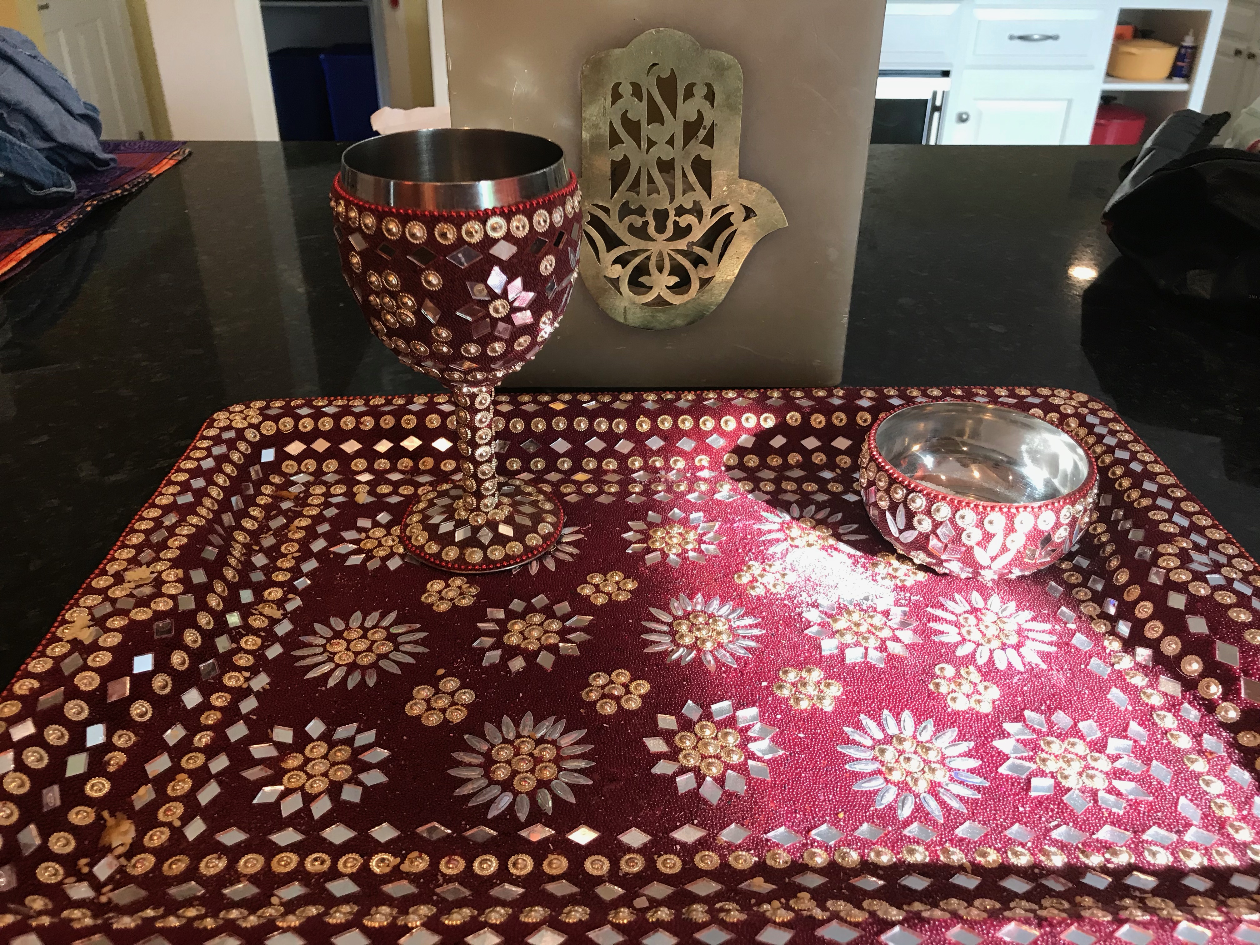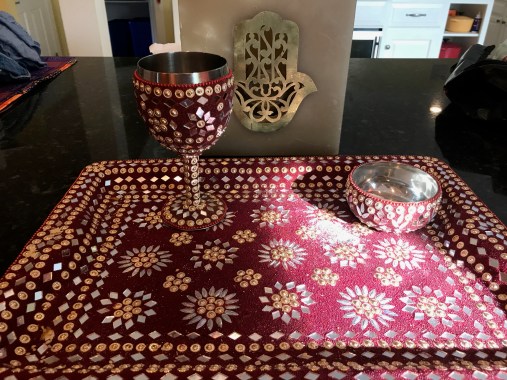 IMG_4841 Previous Next Published April 30, 2019 at 4032 × 3024 in Finding (and making) Kippot & Judaica in the Most Random of Place Challah tray, kiddish cup and salt holder bought from a night market stall in Mumbai. Like Loading...
